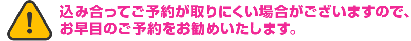 空きがあれば、当日のご予約も可能ですが、混み合うこともしばしばございますので、お早めのご予約をお勧めいたします。