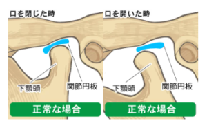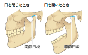 顎の関節のクッションの役割をしている関節円板が傷ついていたり形が変形したりしていると、顎の関節の動きがゆがんでしまい、口の開閉がズレたりします。